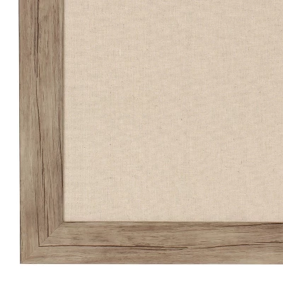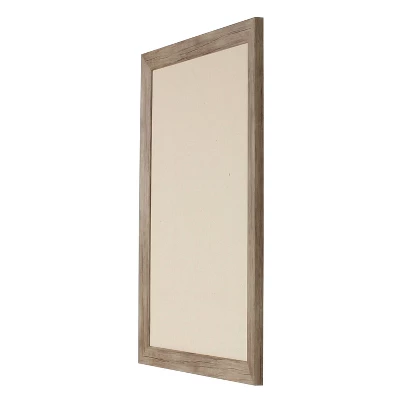 Organize your home or office with this decorative and functional framed linen fabric pinboard. This decorative wall mounted memo board has a soft white linen fabric padded pinboard. Metal d-ring hangers are already attached to the back of the frame for either horizontal or vertical display to fit your needs. The outer display dimensions are 23 inches by 29 inches by 1 inch deep. The fabric pinboard measures 19.5 inches by 25.5 inches. Use this framed bulletin board for maximum organization in your entry way, kitchen, or home office.