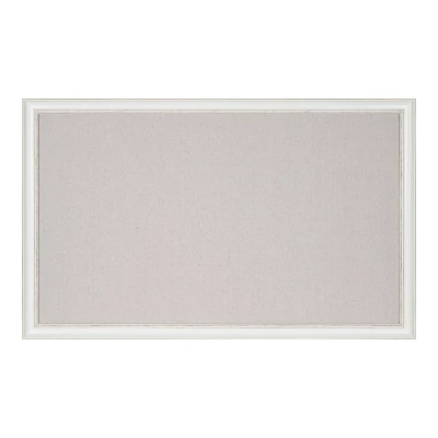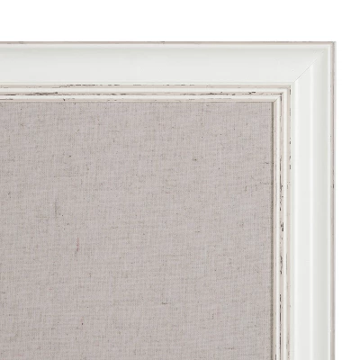 Organize your home or office in style with this decorative and functional framed linen fabric pinboard. This decorative wall mounted memo board has a soft white linen fabric padded pinboard. Metal D-ring hangers are already attached to the back of the frame for either horizontal or vertical display to fit your needs. Memo board surface is 39.5 inches by 23.5 inches; Frame profile is 1.75 inches wide by 1 inch deep. Wall-mounted display dimensions are 43 inches by 27 inches by 1 inch deep. Use this framed bulletin board for maximum organization in your entryway, kitchen, or home office.