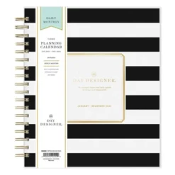 Day Designer 2024 Planner 8″x10″ Daily/Monthly Frosted Cover Rugby Stripe Black