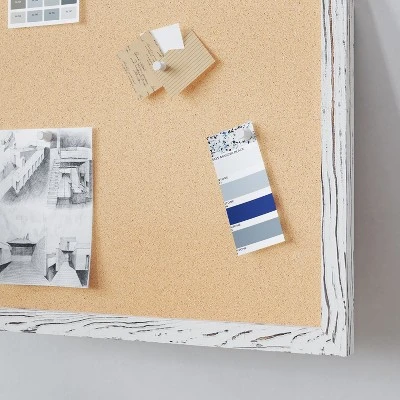 Add a bit of rustic charm and functionality to your home, office or classroom with this Rustic Wall Mount Cork Board. With its whitewashed solid pine wood frame, it not only provides a stylish touch but is also sturdy and durable. Use the included wood push pins to secure your notes, photos, or artwork, or let it stand alone as a piece of decorative wall art. The cork board is easy to hang, either vertically or horizontally with the inlayed hanging hardware. This makes it a versatile addition to any space, providing an easily accessible place for communication or showcasing sentimental items. Whether it’s a shopping list, a reminder, or a child’s masterpiece, this board is perfect for displaying it in style.
