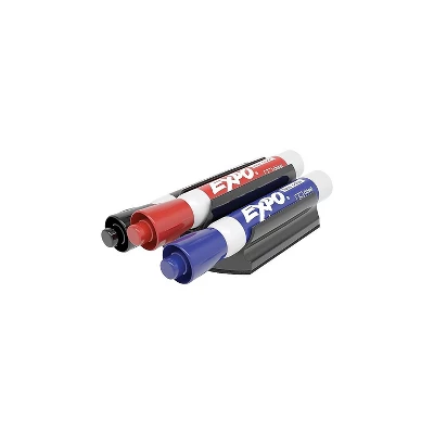 Get a consistent flow of ink with this 3-count of EXPO Markaway3 chisel-tip assorted-color dry-erase markers. Make both thick and thin lines with these EXPO Markaway3 chisel-tip dry-erase markers. Each marker has a magnetic clip eraser that works on any magnetic whiteboard to keep them from getting lost, while the nylon eraser makes it easy to wipe away unwanted marks. These EXPO Markaway3 dry-erase markers have fast-drying, smear-proof ink to help ensure consistent writing quality. Dry-erase markers for writing and drawing. Ink comes in an assortment of colors, including black, red, blue colors. Chisel tips create thick or thin lines. Each set includes three markers and a whiteboard eraser. Low-odor ink for your comfort. Sold as 1 Set.