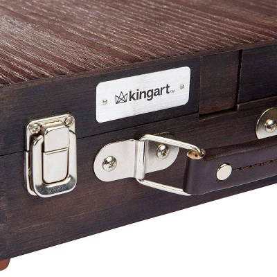 Whether you are a seasoned artist or a beginner, this easel art box by KINGARTâ„¢ is the perfect storage solution for your art supplies. Featuring an adjustable easel that can hold canvases of varied size, this compact art box is ideal for your on-the-go projects. It’s lovely brown finish adds an elegant, vintage charm to this box.