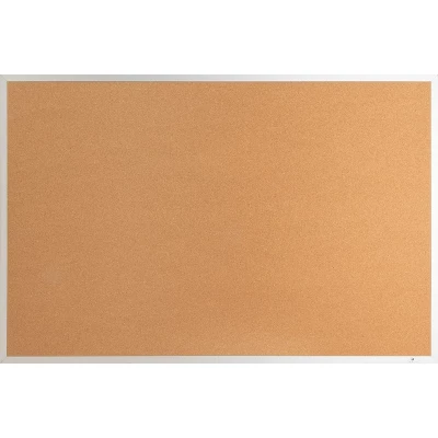 Corkboard features thick cork that is laminated to sturdy fiberboard with a sealed back. Design provides long-lasting service and prevents warping. Cork is 0.8mm thick with an 8.5mm backing. Pushpins and tacks penetrate easily and hold firmly. Corkboard has an aluminum frame and includes mounting hardware. . Sold as 1 Each.