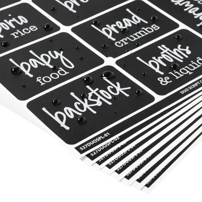 - No Messy Handwriting: These chalkboard pantry labels feature white script lettering preprinted on water-resistant, black vinyl with an adhesive backing that resists tearing and peeling; remove and replace the pantry sticker as needed