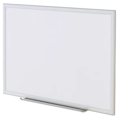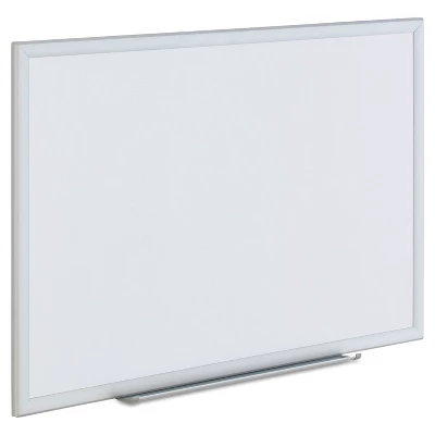 Deluxe, ultra-durable board is built to last. Whether you choose to go contemporary with an aluminum frame or traditional with a wood frame, its classic, low-impact design will blend right in, helping you lead your audience’s attention where you want it, on your notes and illustrations. Easy-to-erase, high-quality melamine surface is compatible with all dry erase markers. May be mounted horizontally or vertically. Marker/eraser tray. Board Type: Dry Erase; Board Width: 36″; Board Height: 24″; Surface Material: Melamine. Board has sturdy construction and is built to last. Can be horizontally or vertically mounted. Includes attachable marker tray and all mounting hardware. Silver aluminum frame. Wall mount makes it easy to write on the board for extended periods. Package includes: wall mounting kit and marker tray. Non-magnetic whiteboards offer excellent writing and erasing qualities. Sold as 1 Each.