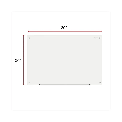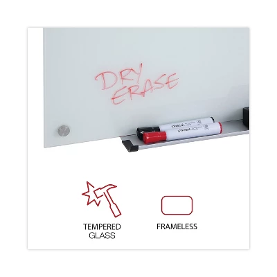 Glass board surface clearly displays any color of dry-erase ink. Infinity edge gives a modern look to any office or conference room. Easy to install with included pass-through mounting hardware. Glass board can hang vertically or horizontally. Includes one dry-erase marker. Glass board surface clearly displays any color of dry-erase ink. Infinity edge gives a modern look to any office or conference room. Includes one dry-erase marker. Sold as 1 Each.